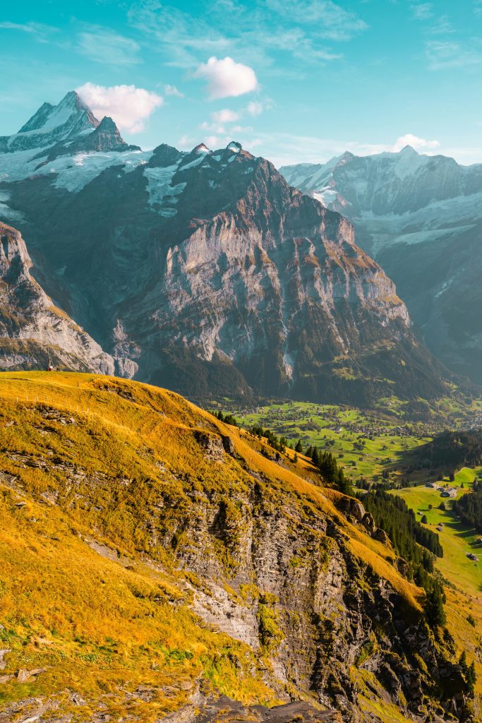 Genesteld onder de noordwand van de legendarische Eiger is Grindelwald een sprookjesachtig bergdorp dat het hele jaar door betoverd. ’s Winters transformeert het in een skiparadijs met perfecte pistes, terwijl de zomer ongeëvenaarde wandelmogelijkheden biedt met uitzichten die je de adem benemen. De nieuwe First Cliff Walk en de spectaculaire gondels maken dit dorp een must-visit voor bergliefhebbers.